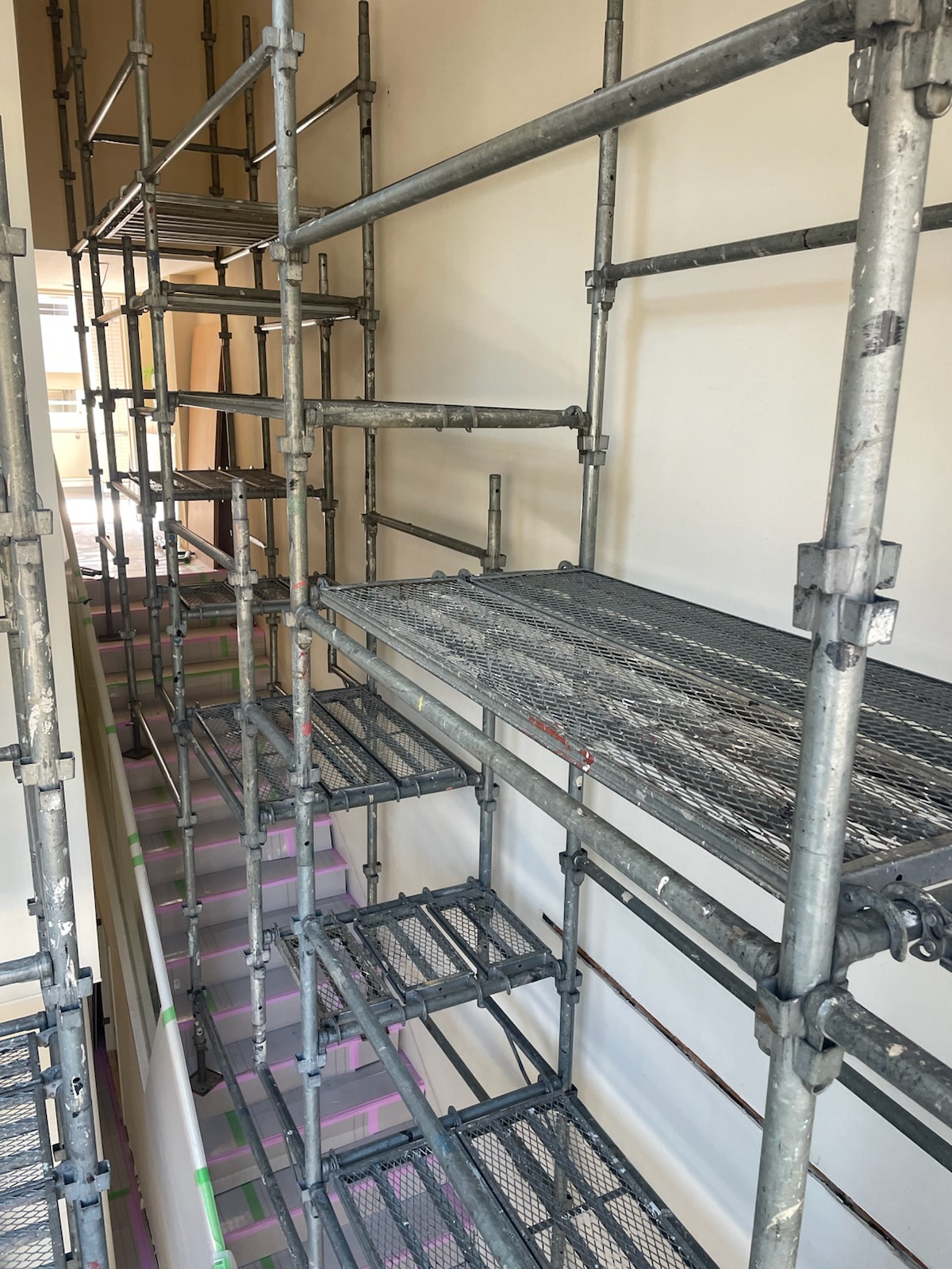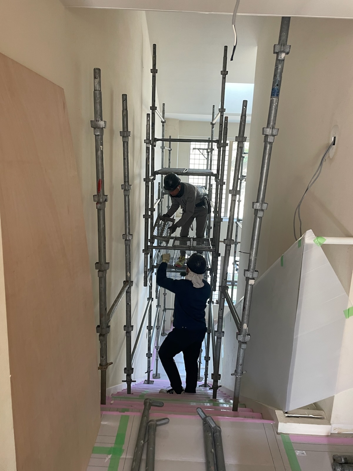 世田谷区にて、マンションの室内改修工事用の足場を設置中。