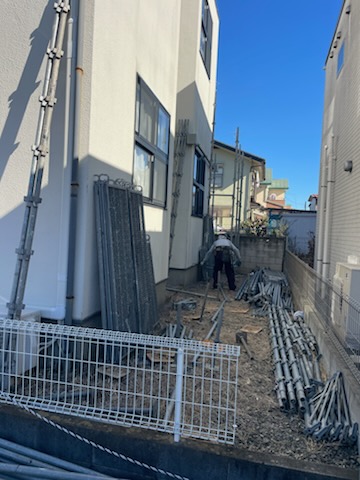 川口市にて、改修工事用の仮設足場を設置中。